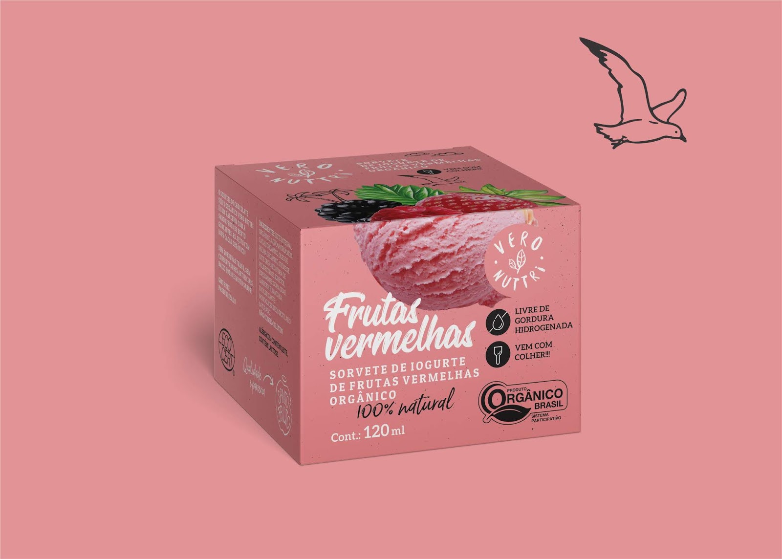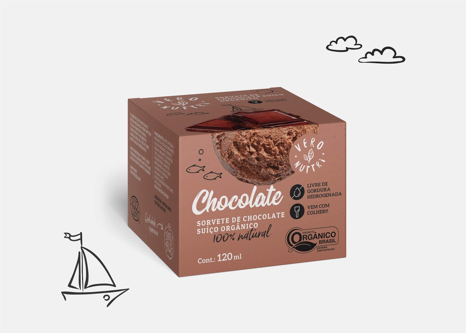 Коли Veronuttri Organic Ice Cream запропонували кілька смаків, їхня ідентифікація споживачем стала необхідною. У поєднанні із м’якою палітрою кольорів та ілюстрацій дизайн упаковки підкреслює легкість продукту, викликаючи у покупців розслаблення і відчуття сонячного літнього дня. Щоб показати характеристики продукту, такі як натуральність, органічність і легкість, розробники створили автентичний вигляд упаковки за допомогою ілюстрацій. Пакування було створене для демонстрації продукту, який може справити враження під час під час розкладки.
