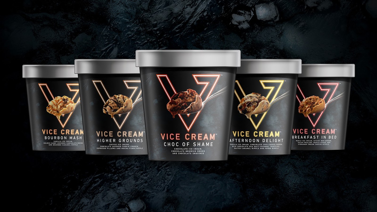 Брендингова агенція INTERACT у співпраці із Vice Cream розробила дизайн упаковки для торгової марки морозива. Метою проєкту було пробудити нудну і понуру категорію морозива, дати людям те, чого вони хочуть. Оскільки культура споживання паралізована вибором, ринок наповнений низькокалорійними продуктами без глютену і цукру, нас постійно підштовхують займатися спортом, їсти салати і відмовитися від смаженої їжі. Vice Cream вважає, що морозиво – це бездоганне задоволення.