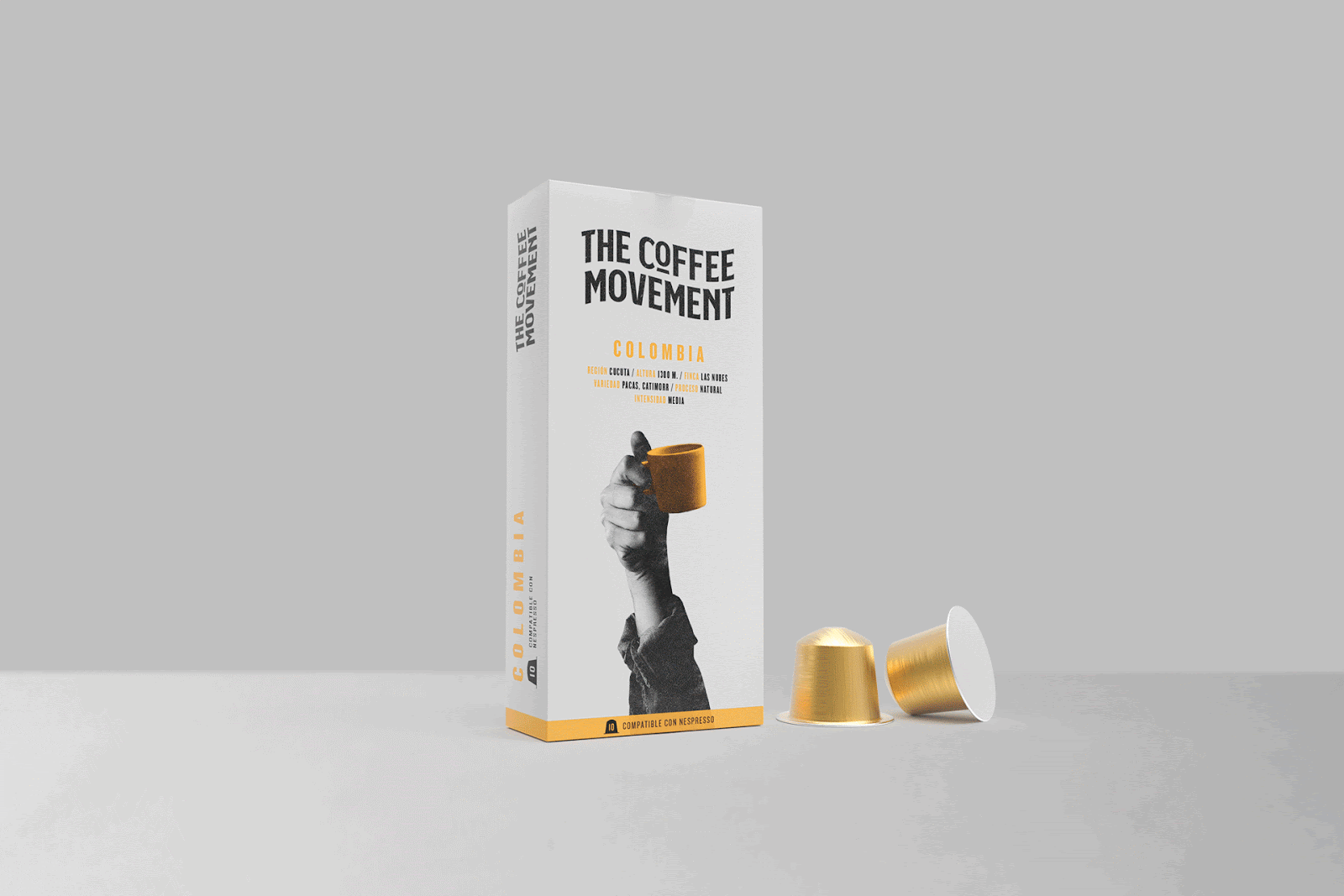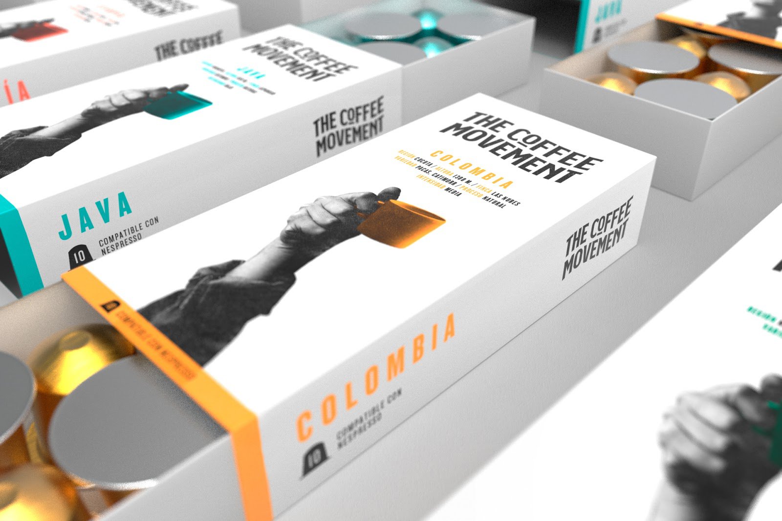За конструктивом упаковка для кави схожа на сірникову коробку, що легко розкрити і закрити. Це максимально оптимізує простір за розташування капсул. Цей продукт відмінний від того, якого очікують у кавовому світі, адже він об’єднав досвід і рух, заснований на походженні і цінностях кави.