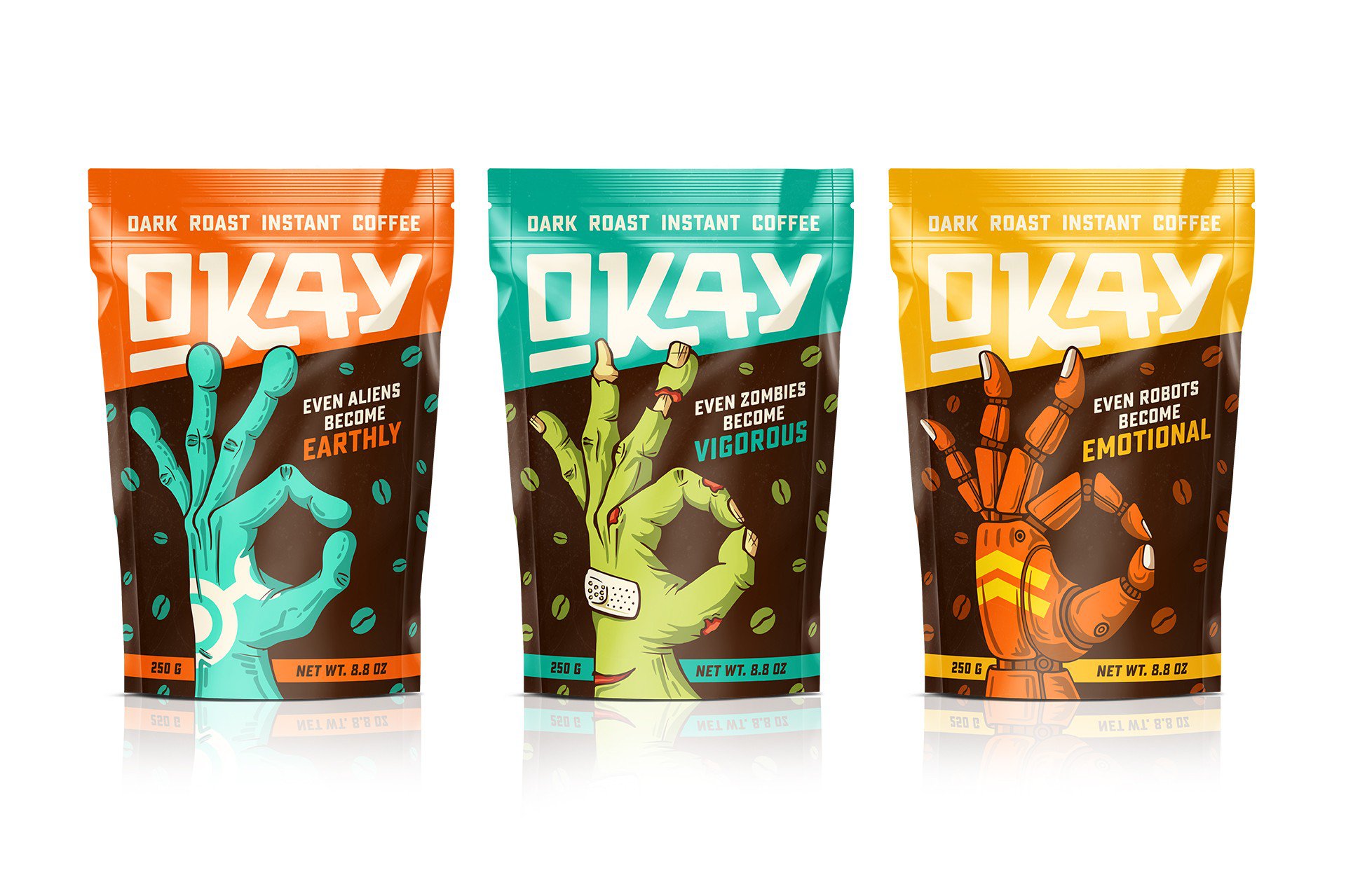 Креативне агентство Formascope розробила незвичайний дизайн для бренду кави OKAY Coffee. Головним завданням було те, щоби продемонструвати, як кава може змінити настрій людини на позитивний.